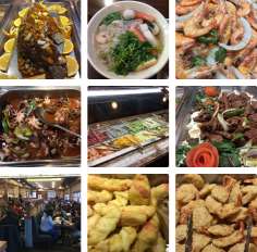 一家大型自助餐厅,可以选择的面很多,有几十种做好的食品供选择。吃的非常好,海鲜、水果等应有尽有。
