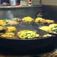 蒙古式炒面店,抓取想要吃的菜料,让师傅炒一下就可以吃了。