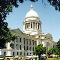 阿肯色州议会大厦位于美国阿肯色州的首府小石城,是阿肯色州政府的办公机关所在地。其建造期总共花了16年——从1899年到1915年。其外部是石灰石构成,其大门是以一万元美金自纽约的Tiffany买来的,是以铜制成高约3米厚约10公分,其圆顶更是全部贴著24K金的金箔。