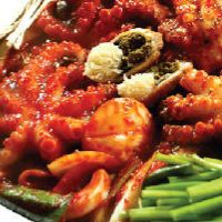 这里的石锅拌饭挺好吃的,里面放置了很多海鲜。