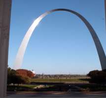 大拱门(The Gateway Arch,也叫The Gateway to the West)是 圣路易斯市的地标 圣路易斯地处美国中部,建造它的人认为它可以很好地象征人们当年西进的勇气和决心。这个大拱门建立于 1963年,完工于1965年,高192米,宽度和高度是一模一样的,也是192米。