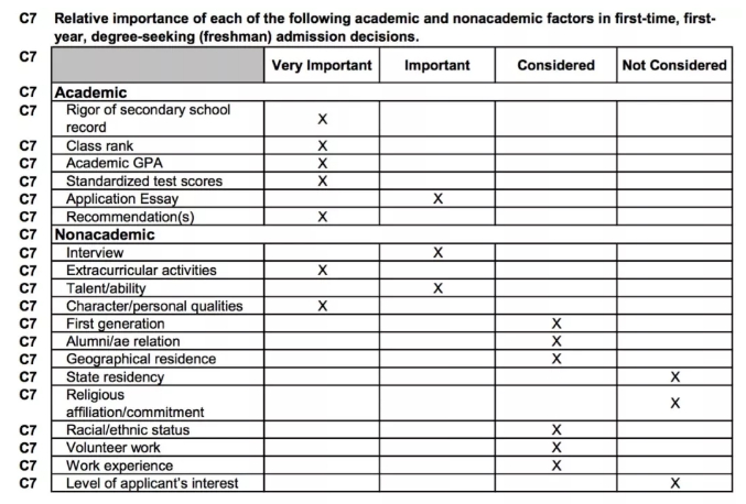 工作经历和志愿者经历被列为 “Considered” 项,也就是说这个因素并不是非常重要的一个。但是如果申请者有相关经历,学校也会作为申请材料的一部分来评估。而且,工作经历和志愿者经历也都属于活动背景,如果申请者可以把工作实习或志愿者活动做得有声有色,那这无疑会成为一个特别的加分点,也会成为学校重点关注和考虑的特点。