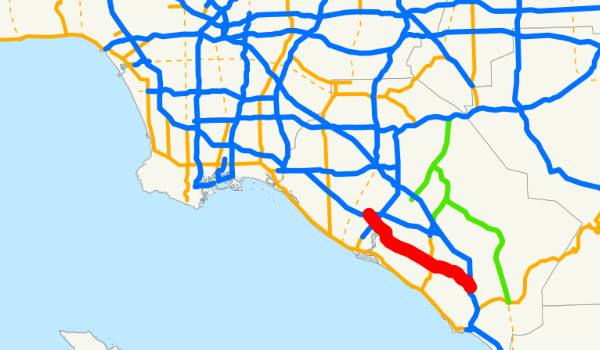 73号加利福尼亚州州道是加州高速及快速公路系统的一部分。[3]5号州际公路与向北到达圣胡安 - 卡皮斯特拉诺时,通过一座“Y”型的交流道将73号州道分出,这就是73号州道的南端起点。公路随即向西北方向转折,首先到达小城尼古湖,这是收费公路段在格林菲尔德道(Greenfield Drive)出口处开始之前的最后一个能免费到达的城市。之后公路先后经过亚里索维耶荷和拉古纳海滩。73号州道在拉古纳海滩与133号加利福尼亚州州道相交。继续向北,公路经过水晶海滩州立公园,73号州道最主要的收费站就位于这附近。通过收费站后,公路跨越了尔湾和纽波特比奇的交界,并通过野牛大道(Bison Avenue)出口连接加州大学尔湾分校。麦克阿瑟大道(MacArthur Boulevard)的出口是收费公路段的北端终点,免费段则继续向北,沿着约翰韦恩机场的南边沿继续向西北前进,并与55号加利福尼亚州州道交汇,然后最终在科斯塔梅萨汇入405号州际公路