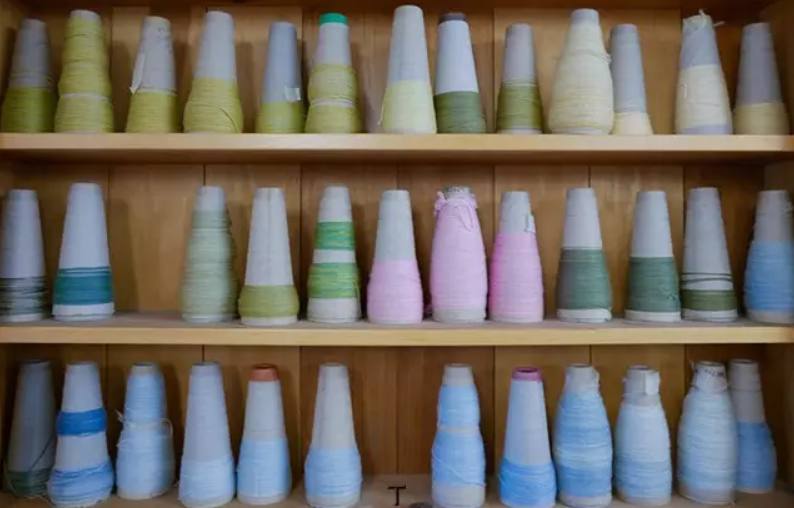在诺特斯波特的工作室,毛线因在传统的染缸中浸入自然染料而呈现出了一种高饱和度的色调。
