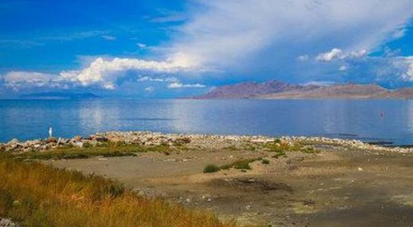 犹他大盐湖是美国最大的盐湖。它的面积约4500平方公里,与我国的青海湖面积相当。但在丰水期,它的面积比青海湖要大近一倍。大,是所有见到犹他大盐湖的人的共同感慨。然而,在造物主的眼里,它却只是两万年前在地球上存在过的邦纳维尔湖所剩下的几近干涸的一小滩残水。