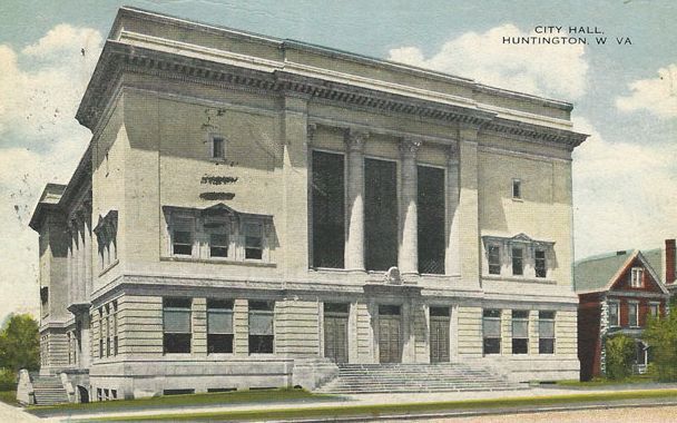亨廷顿在1871年成立时,它的第一个市政厅是一栋小型框架建筑,建于第四大街800街区。后来,在第5大街以北的第9街东侧竖起了一个更大的红砖建筑。该建筑物设有市政府,消防部门,警察部门和市监狱。 1887年,当县城从Barboursville迁至Huntington时,县政府共同使用城市建筑,直到1901年完成Cabell County Courthouse的建设。